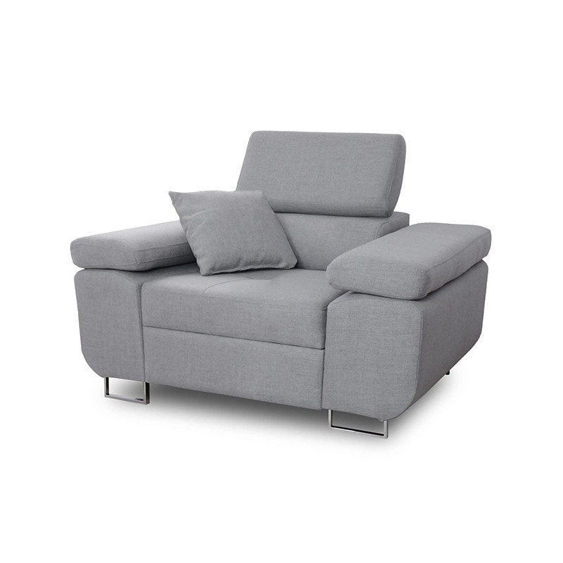 Fotel wypoczynkowy Annabelle z regulowanym zagłówkiem to połączenie nowoczesnego designu, elegancji i funkcjonalności. Jego prosty, ale efektowny wygląd z chromowanymi nogami dodaje blasku, a subtelne detale sprawiają, że stanie się on centrum uwagi w każdym salonie. Dzięki szerokiemu wyborowi kolorów obicia, łatwo dopasowuje się do stylu i wnętrza. Fotel Annabelle to także doskonała opcja dla osób ceniących wygodę i wsparcie. Wyposażony w regulowane zagłówki, pozwala na dopasowanie go do indywidualnych potrzeb użytkownika. Siedzisko na sprężynach falistych oraz pianka poliuretanowa T30 w połączeniu z oparciem z pianki T25 tworzą idealne warunki do relaksu, zapewniając optymalne podparcie ciała. Solidna konstrukcja z drewna i płyty wiórowej gwarantuje trwałość, dzięki czemu fotel posłuży przez wiele lat. Dzięki swojej formie, fotel Annabelle daje pełną swobodę aranżacyjną. Można go umieścić w dowolnym miejscu w salonie, tworząc przytulną strefę relaksu. Idealnie komponuje się z nowoczesnymi wnętrzami, a także pasuje do pozostałych mebli z kolekcji Annabelle.