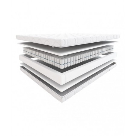 Twardy materac z 7-strefowym rdzeniem sprężynowym i wysokoelastyczną pianką FlexiFoam.