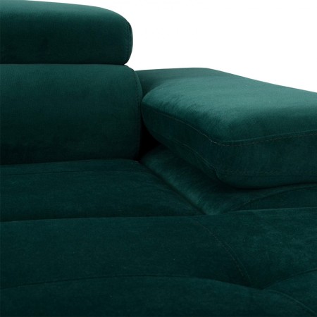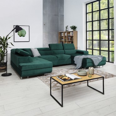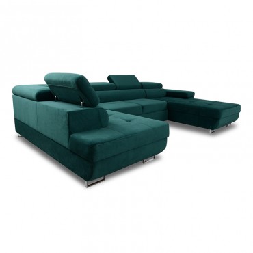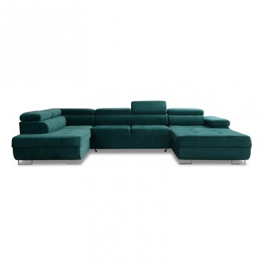 Narożnik Annabelle U II to nowoczesny i elegancki mebel, zaprojektowany z myślą o większych przestrzeniach, w których liczy się zarówno styl, jak i komfort codziennego użytkowania. Charakterystyczny kształt litery U zapewnia obszerną powierzchnię wypoczynkową, idealną do wspólnego relaksu w gronie rodziny czy przyjaciół. Delikatne przeszycia na siedzisku, zaokrąglone oparcie oraz regulowane zagłówki nadają całości wyrafinowanego wyglądu, a chromowane nóżki wprowadzają nowoczesny akcent, podkreślając lekkość konstrukcji. Komfort użytkowania gwarantują elastyczne siedziska i miękkie oparcie, które zapewniają odpowiednie podparcie dla kręgosłupa i wygodę w każdej pozycji. Narożnik został wyposażony w funkcję spania, dzięki czemu w prosty sposób można przekształcić go w wygodne łóżko. Dodatkowy atut stanowi praktyczny pojemnik na pościel, który pozwala utrzymać porządek i ułatwia przechowywanie tekstyliów. Model Annabelle U II dostępny jest w szerokiej gamie tkanin i kolorów, co umożliwia dopasowanie narożnika do indywidualnych preferencji oraz charakteru wnętrza.