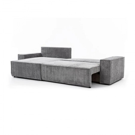 Narożnik Flabio Mini łączy nowoczesny design, wygodę i funkcjonalność, oferując komfortowy sen i elegancję w salonie. Szer. 283 cm; wys. 90/77 cm; gł. 144 cm. Powierzchnia spania: 230x122 cm.