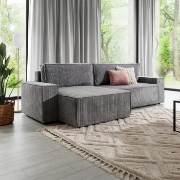 Narożnik Flabio Mini to połączenie nowoczesnego designu, komfortu i funkcjonalności, które sprawdza się w każdym salonie. Eleganckie wykończenie i możliwość wyboru koloru pozwalają dopasować narożnik do indywidualnego stylu wnętrza, podkreślając jego wyjątkowy charakter. Wysokiej jakości materiały, takie jak solidne drewno, płyta wiórowa oraz siedzisko z pianki wysokoelastycznej HR i sprężyn falistych, zapewniają wygodę użytkowania i trwałość na długie lata. Funkcja spania zamienia narożnik w wygodne miejsce do odpoczynku lub komfortowe łóżko dla gości, a pojemnik na pościel i zdejmowane poduszki ułatwiają utrzymanie porządku. Flabio Mini sprawdza się zarówno w codziennym relaksie, jak i podczas spotkań towarzyskich, oferując praktyczne rozwiązania i estetykę w jednym. Prostota formy i elegancja sprawiają, że narożnik harmonijnie komponuje się z innymi meblami, wprowadzając przytulną i nowoczesną atmosferę, a jego wytrzymała konstrukcja gwarantuje komfort i stabilność na lata. Mebel dostępny jest w wersji prawo- i lewostronnej.