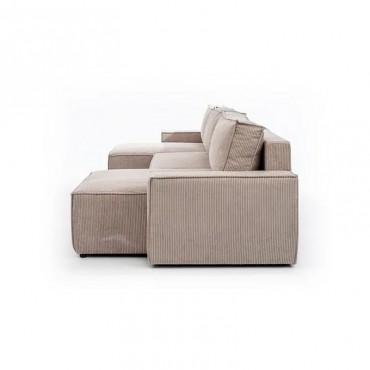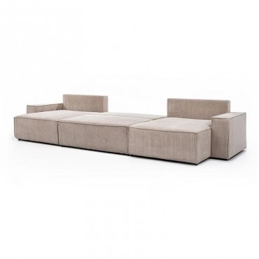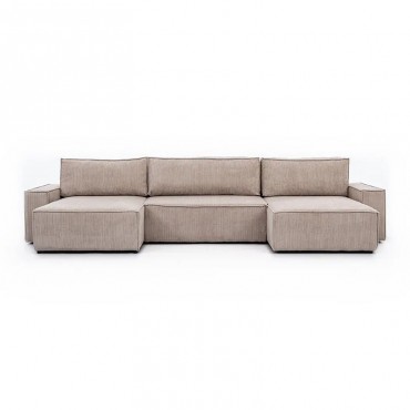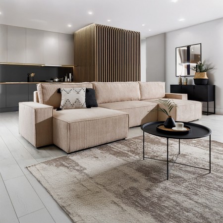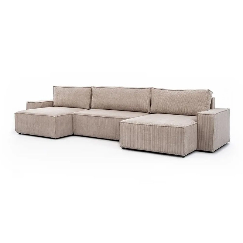 Narożnik z funkcją spania Flabio U II to połączenie elegancji, trwałości i przemyślanych rozwiązań, które tworzą komfortową strefę relaksu w salonie. Charakterystyczny układ w kształcie litery U optymalnie wykorzystuje przestrzeń, oferując wygodne miejsca siedzące dla całej rodziny. Siedzisko wykonane z pianki wysokoelastycznej HR wspieranej sprężynami falistymi zapewnia odpowiednie podparcie i sprężystość zarówno podczas wypoczynku, jak i snu. System rozkładania umożliwia szybkie przekształcenie narożnika w przestronne łóżko, natomiast pojemnik na pościel ułatwia przechowywanie i utrzymanie porządku. Solidna konstrukcja z drewna i płyty wiórowej gwarantuje stabilność oraz długotrwałe użytkowanie. Starannie wykończone detale, minimalistyczne linie i możliwość wyboru tkaniny oraz kolorystyki pozwalają dopasować mebel do różnych stylów wnętrz, od nowoczesnych po klasyczne. Flabio U II to funkcjonalne rozwiązanie dla osób poszukujących stylowego, wygodnego i praktycznego narożnika, który doda wnętrzu eleganckiego charakteru.